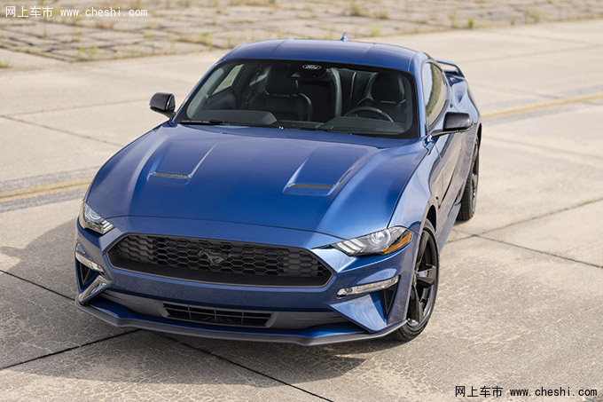 两款车型均采用就有金属光泽的蓝色外观涂装,熏黑格栅十分运动。Mustang EcoBoost Stealth Edition装配19寸深色轮毂,车尾配备大尺寸的扰流板,底部排气采用运动感十足的双边共四出布局。Mustang GT California Special车身两侧装配导风通道,进气格栅、车尾中间位置嵌有“GT/CS”标志,排气同样采用四出布局,枪灰色轮毂内部配备深蓝色的Brembo刹车卡钳。