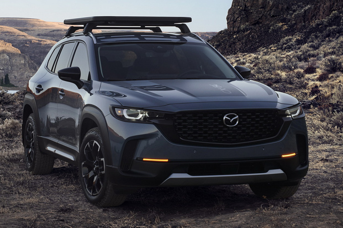 马自达全新CX-50前脸选用了熏黑点阵式进气格栅,两侧LED头灯组造型也得到了升级优化,上方隆起机舱盖进一步提升了车型硬派气息。而车尾部分则选用了隐藏式排气布局,车顶上方还加装了金属行李架,尾灯组也进行了熏黑处理。
