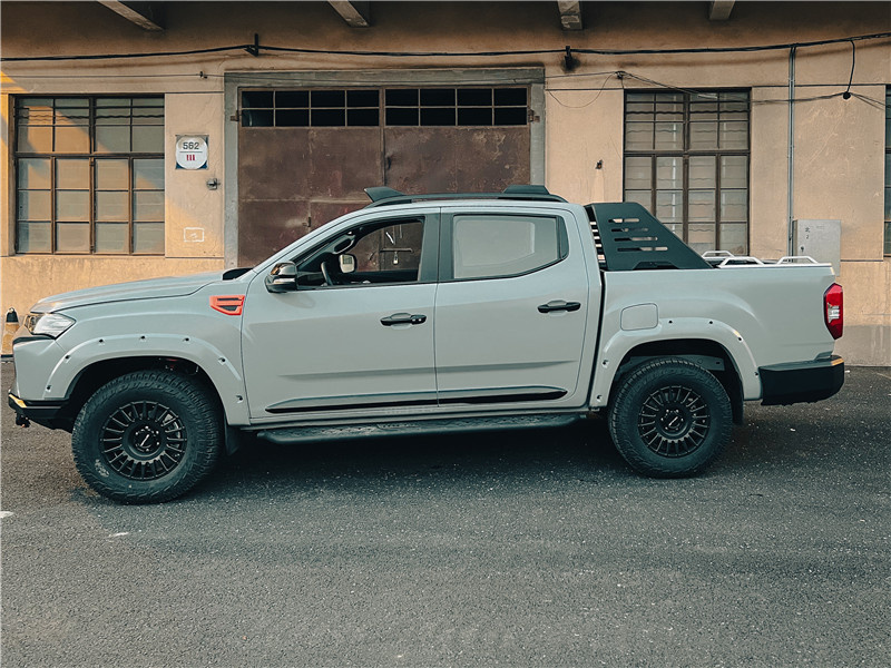 动力方面搭载上汽π Bi-Turbo双增压柴油发动机,其双涡轮增压的峰值扭矩可以达到500N·m。整车高度提升了近11cm,轮距加宽15cm,搭配285/70R/17 越野大轮胎,抬高离地间隙的同时,接近角在原厂基础上增加15度,离去角增加10度,极大的提升了车辆的通过性。