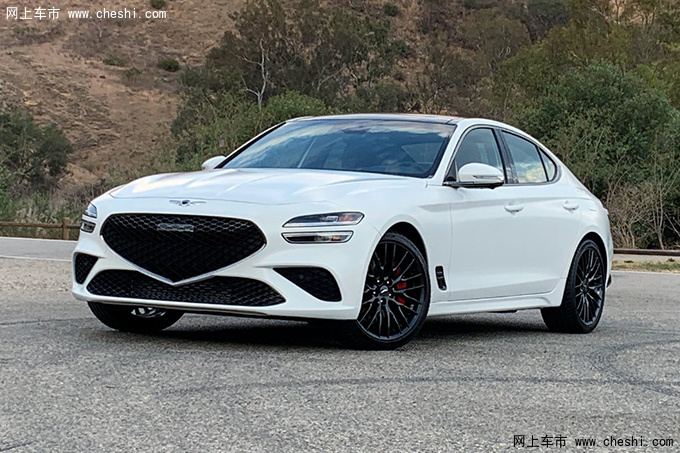 外观方面,捷尼赛思全新G70搭配白色车身涂装,并采用家族式设计语言,配备了大尺寸钻石风格的金属网格状进气格栅,车头两侧搭载辨识度极强的分体式LED头灯。车身侧面来看,新车腰线从前轮眉处延伸至车尾,底部配备多辐式熏黑铝合金轮毂。车尾采用小鸭尾式设计,尾灯造型与前大灯相呼应,下方采用双边共双出的椭圆形排气。