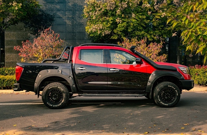纳瓦拉畅途版是纳瓦拉国六自动挡车型上市后首款特装车,该车试图为车主营造一个移动城堡。纳瓦拉畅途版外观使用了哑光灰色车漆,非常有质感,增加了车顶圆形工作灯、长排工作灯、轮眉护板、电动货箱盖、车顶罩外观性实用组件,轮胎更换为百路驰全地形胎,搭配特质越野轮毂显得非常炫酷。