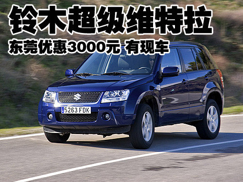 网上车市东莞站讯:铃木超级维特拉兼具越野车的强悍与轿车的温柔,超级维特拉是一款真正的越野4×4。近日根据网上车市价格监测系统显示,目前在东莞地区4S店购买超级维特拉可现金优惠3000元,想了解更多车型优惠可咨询:0769-33391389,88034072,东莞购车QQ群:11012096。具体详情请看下表: