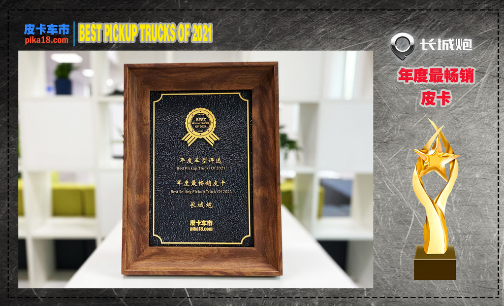 2020年伊始,皮卡车市正式推出“BEST PICKUP TRUCKS——皮卡车市年度车型评选”,对上一年度出现的、并在市场上有杰出表现的产品进行专业评选,根据市场表现、行业认可以及用户反馈综合评定出年度大奖。今年,“BEST PICKUP TRUCKS OF 2021——2021年皮卡车市年度车型评选”如期而至,继续对2021年度市场上的优秀产品进行综合评定,选出对整个市场有引领作用的强势产品。其中,长城炮不负众望,荣膺皮卡车市“2021年度车型评选”之“最畅销皮卡”殊荣!