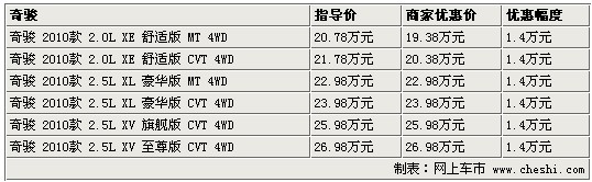 外观上不及CR-V或者途观,但在越野性能上,奇骏的技术优势并无疑议,随着人们对车的要求越来越提高,尽管奇骏的优惠幅度已经很大却难以讨好消费者,编者从东风日产4S店了解到,目前奇骏系列车型最高优惠2万元,进店后还可再商谈。