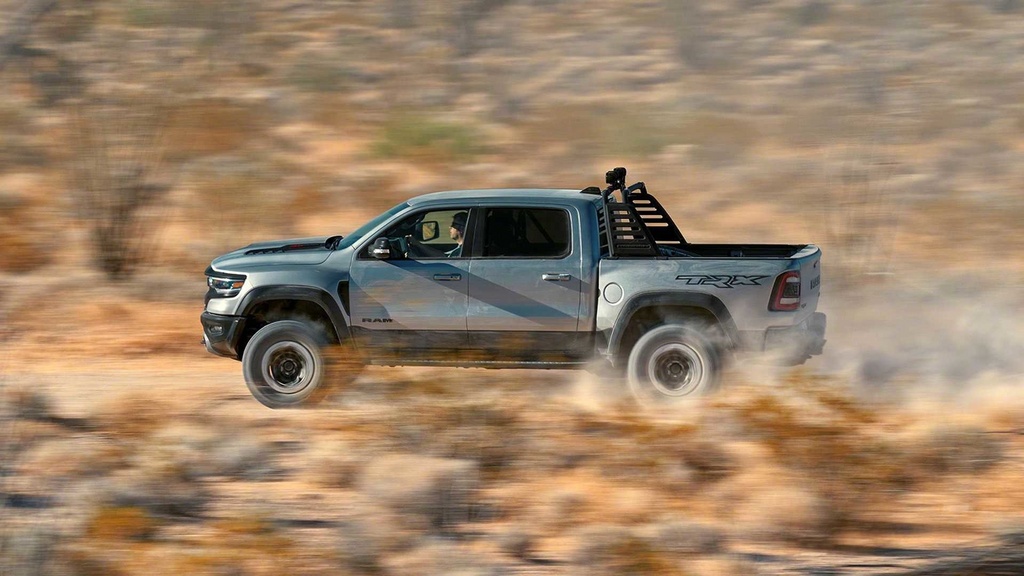 Ram TRX最令人注目的产品卖点便是其所搭载的6.2升超级增压HEMI V8发动机,这款发动机和道奇地狱猫属于同款动力,最大功率523kW(712马力),峰值扭矩881N·m,0-96km/h仅需4.5秒。Ram TRX延续了美国汽车企业一贯的“力大飞砖”研发思路,几乎不把空气动力学作为主要设计目标,这一点和隔壁俄罗斯的飞机设计理念高度重合,因此很多美国车都被戏称为“中石油战略合作伙伴”,Ram TRX自然也不例外。