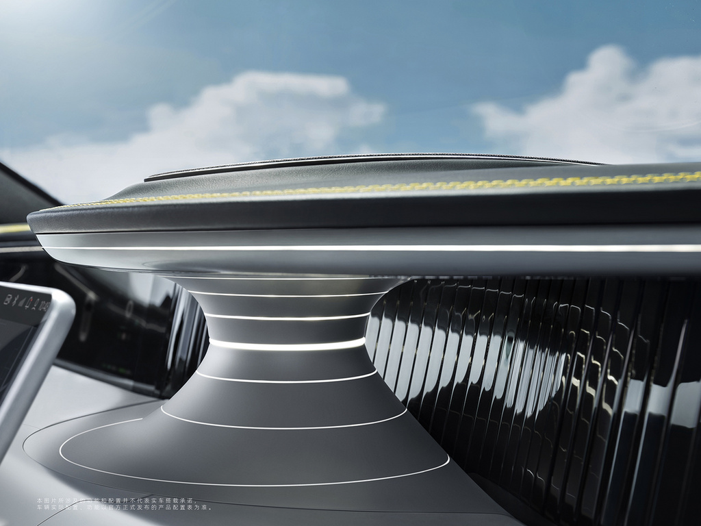 阿维塔11的内饰遵循拱心石原则,整体风格以柔软、温暖、舒适为主,其中“青灰”主题的浅色内饰设计风格酷似太空座舱,在配色方面颇有新意,青灰主色调搭配深色顶棚和中控,座椅采用NAPPA真皮及超纤麂皮绒材质包裹,在细节处以灵动柠檬黄色点缀,营造未来感的同时还提供了平淡且安逸的居家感。