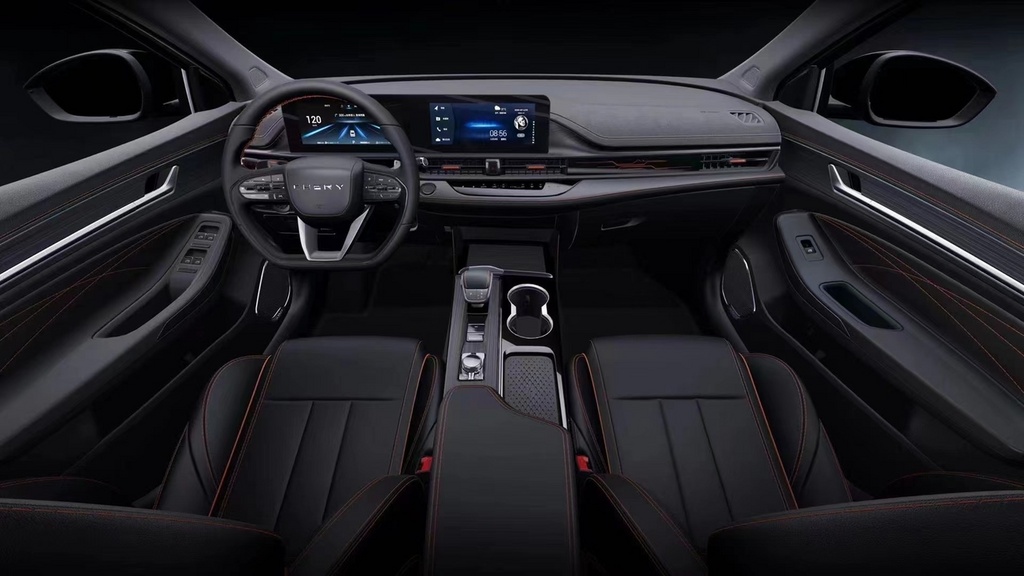 通过本次公布的官图能够看出,新车内饰采用了非对称式设计,并配备了较为运动的平底式三幅式方向盘,仪表盘和中控屏则采用了时下流行的贯穿式设计,科技感更加突出。在内饰用料方面,新车除了采用大面积软质材料包裹以外,还融入了琴键、金属拉丝、橙色缝线等元素,进一步提升了精致感。