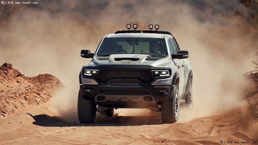 与此同时,Ram TRX将会有Ram皮卡首次配置的地形管理系统,提供巴哈、沙地、泥地、雪地等多种扭矩分配模式。此外还有弹射起步功能、跳跃监测功能、越野巡航功能以及抬头显示器,跳跃监测功能可以侦测皮卡是否离地,从而调节档位、扭矩分配和避震硬度,避免落地时对车产生伤害。作为一款顶级玩具皮卡,Ram TRX的内部配置也绝不寒酸,12英寸大尺寸中控屏支持蓝牙、导航、车载Wi-Fi、苹果PlayCar & Android dAuto等功能,另外还有360度全景图像、点眼监视、碰撞警报、自适应巡航、车道保持辅助等驾驶辅助功能。