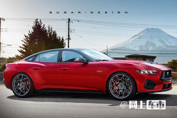 从发布的外观渲染图中可以看出,福特全新Mustang四门轿跑版整体造型与产品序列旗下GT车型基本保持一致,前脸装配了分体式熏黑网状进气格栅,两侧还提供了全新造型的LED头灯组。同时,头部机舱盖上方还加入了高流量进气风口,车身侧面首次采用了四门溜背式轿跑设计风格,车尾部分预计将选用双边双出式排气布局。