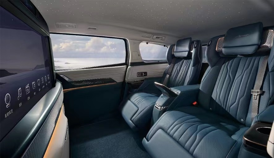 配备强大的功能,就必须提供便利的操作。二排座椅的中央扶手前端集成8吋智控屏,搭载一枚专用的高通8155车载旗舰芯片,可实现整车控制与座椅调节全方位的流畅交互操作,一指掌控包括座椅、门窗、空调、音响、星空顶、智慧幕墙等功能控制。