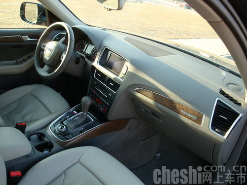 奥迪Q5有着同级别车型中最长的2807 mm轴距,为其营造了充裕的车内空间。为了更有效的利用车内空间,国产奥迪Q5提供同级别车型中较为灵活的座椅组合方式。前排座椅具备8方向电动调节功能。后排座椅可4/6分体式折叠,并有四种折叠方式,可进行前后100 mm的水平位置调节。同时坐垫部分可以进行前后位移以拓展行李空间或是适应乘客的不同身材。当腿部空间调整至最小时,腿部仍有半拳的剩余空间;当后排腿部空间最大时乘客可以翘起二郎腿,相当舒适。