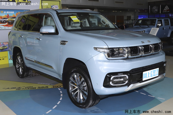 新车前脸采用发光格栅,两侧圆角矩形灯组与格栅无缝衔接。车侧下沿及车窗外沿均配有镀铬装饰,下方搭配18英寸轮毂。车尾提供外挂式备胎,采用隐藏式排气。BJ60车内支持10.25英寸全液晶仪表+12.8英寸中控液晶显示屏+W-HUD+启动按钮屏幕组成的四屏联动,屏内集成360°全景影像、AEB紧急制动系统等智驾辅助功能。