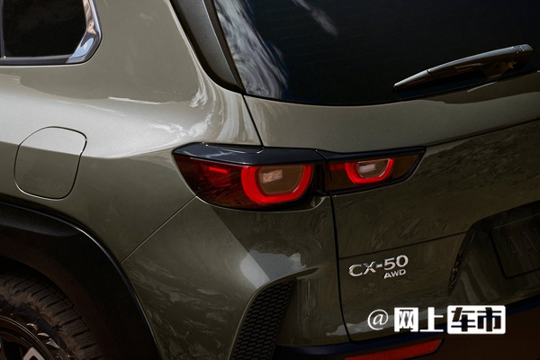 CX-50延续马自达品牌“魂动”设计语言,中网造型采用扁平化设计,尺寸比CX-5略大一些,并拉伸了车头的横向视觉宽度。大灯组内部装配环形LED日间行车灯,采用类似开眼角设计。