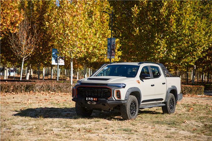 上汽牛·魔王是基于上汽大通旗舰皮卡T90进行研发的车型,整体设计样式基本沿袭了T90皮卡,但又有许多截然不同的设计理念。该车配备限量版前格栅、电动绞盘、涉水喉、锰钢侧踏、金属竞技前后保险杠、多段可调氮气减震,275/65R/17全地形轮胎、以及原厂防爆装甲漆。而且,为了满足多样化的用车需求,还配备了拖车方口和拖车电源???,最大拖拽能力3.5吨。
