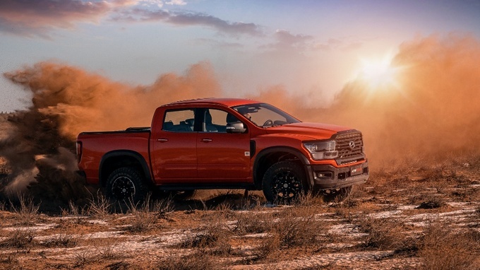 外观层面,中兴威狮1949的尺寸为5692mm(短货箱5393mm)*2045mm*1965mm,座舱总长2290mm,宽度1660mm,货厢尺寸为1810mm(短货箱1530mm)*1700mm*515mm。该车可以轻松满足日常装载所需,并且迎合中高端皮卡玩家的旅行要求,旅行时所用到的帐篷、自行车、皮划艇等工具也可以轻松装载。