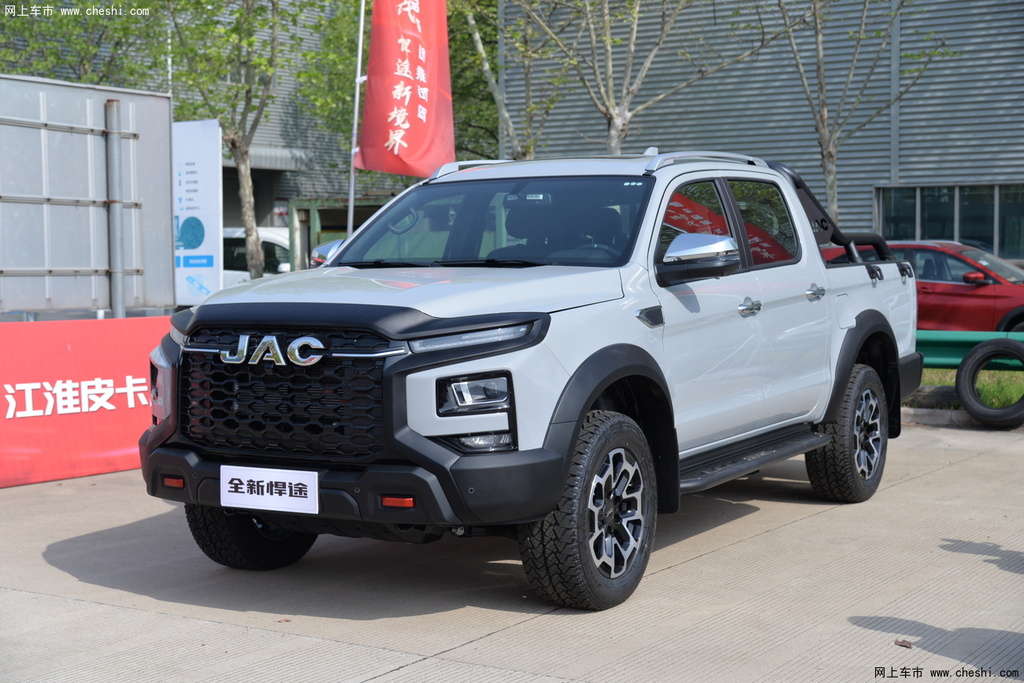 全新悍途自动挡基于江淮全新中大型宽体皮卡架构平台打造,采用2纵9横叠焊式车架,具有出色的底盘稳定性和安全性。新车尺寸为5330(5620)×1965×1920mm,货箱尺寸为1520(1810)×1590×470mm,宽大的尺寸造就了其威猛硬派的外观形象,实车散发出强大的气场。超大尺寸同时带来超大驾乘空间,完美符合中国消费者对汽车产品外观造型威猛、内部空间充裕的追求。