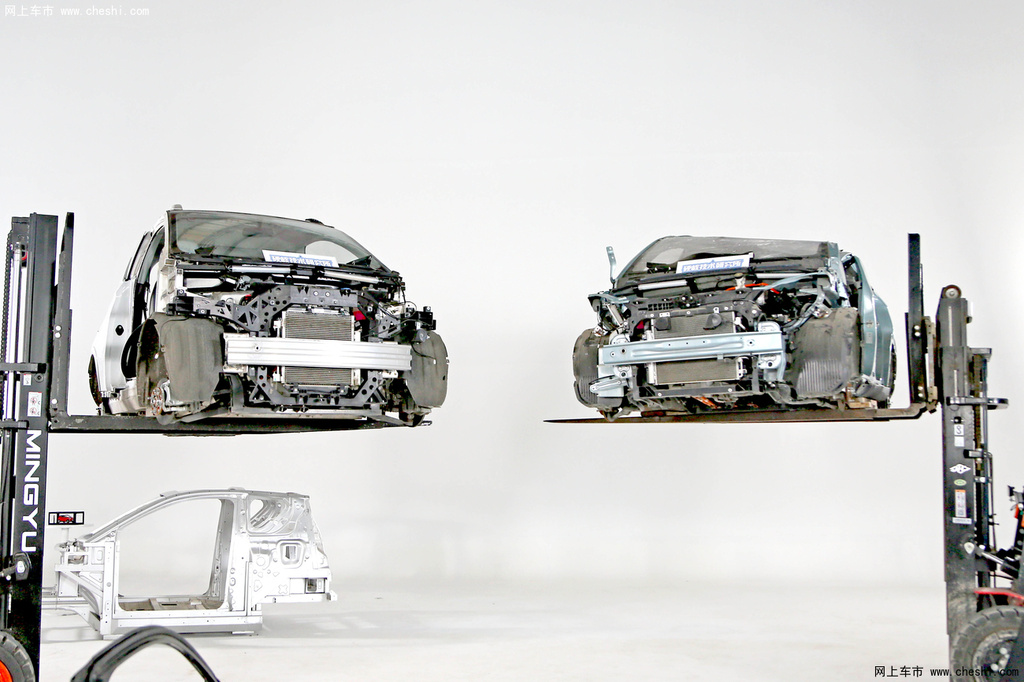 拆完覆盖件,两款车的车体结构完全的展现在了我们面前。