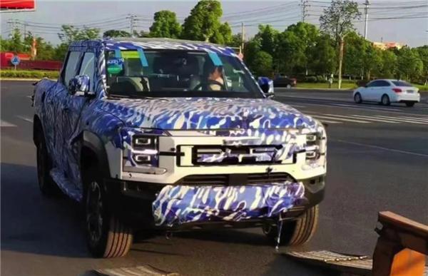 我们来看看这款车的谍照细节。整辆车的车身长度目测在5.4-5.5米左右。它的前脸类似福特经典车型F150猛禽,字母大LOGO中网设计。前脸多个方正设计,分体式大灯,显得这辆车充满了美式皮卡的霸气和硬朗。