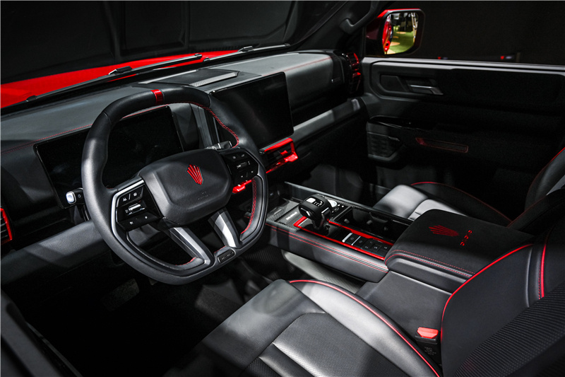 新车采用全新猛虎底盘,首次应用纵梁辊压成型方钢技术,车架强度更高,后拖挂拖拽能力达到3吨以上。悬架系统为前双叉臂后瓦特连杆悬挂结构,拥有220mm悬架行程,可满足全路况驾驶需求。大道品牌还首次为国产皮卡匹配最高2寸可调的可变阻尼氮气减震器。在舒适性和越野性上大大提升。新车还拥有L2.5级智能辅助驾驶系统、J-BOX全栈自研智能网联系统和智能IVI交互生态等,都是安全最新一代乘用车的标准进行配置。