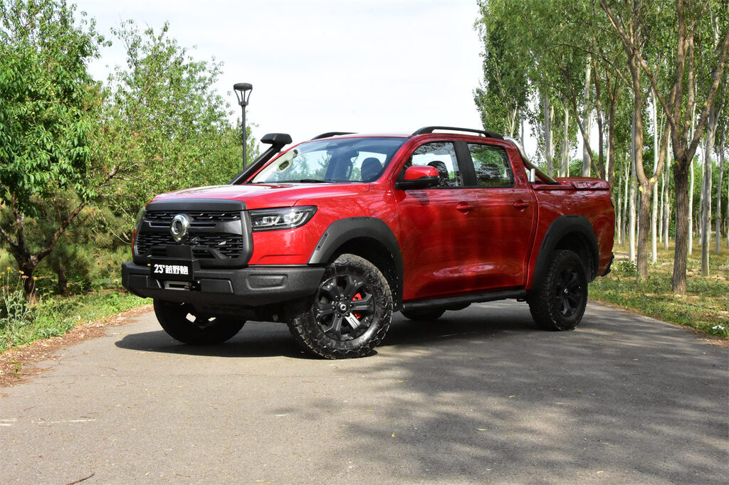 2023款的外观没有太大的变化,仍然是熟悉的猎豹式前脸造型、冠军腰带中网造型,还有很圆润的车头车灯设计,再配合上很高的离地间隙,整车给人的感觉威猛大气。越野炮与商用炮、乘用炮很大的区别就是拥有6大越野改装件: