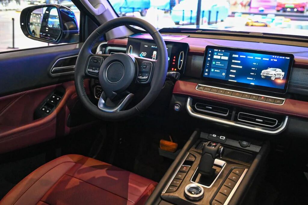 在越野配置方面,龙弹拥有全地形驾驶模式,可适应雪地、泥地、沙地、2H、4H、4L等场景。它还拥有全地形反馈系统和越野专家模式。龙弹配备前/后桥电控式差速锁、分时四驱、蠕行模式、坦克掉头(TAB)、底盘护板、红色制动卡钳和涉水喉等多种越野配置,牵引质量达到2500kg,改装线束预留4个,分别位于机舱、左A柱、座舱和货箱处。