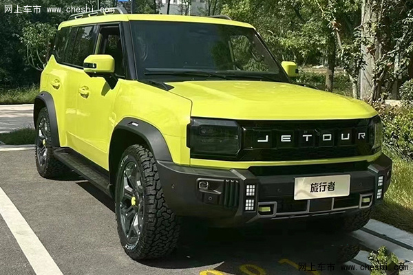 捷途旅行者车身尺寸超坦克300,采用复古设计,方形LED大灯组与捷途英文标识相连,英文标识可进行点亮,保险杠两侧配有拖车钩。车侧轮眉向外凸起,并采用悬浮式车顶设计,车尾配备经典的“小书包”,竖向尾灯采用黑色装饰包裹。