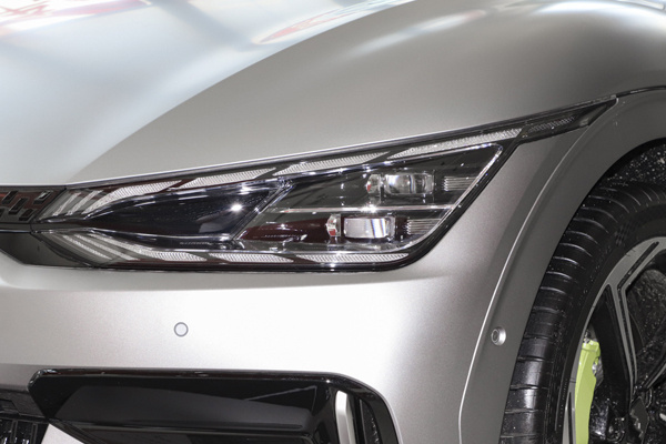 起亚EV6前脸采用细长式中网和后掠式大灯组,前机盖隆起的两条筋线增强了肌肉感。稍显溜背的尾部搭配造型独特的车顶扰流板,贯穿式LED尾灯将视觉重心提得很高。