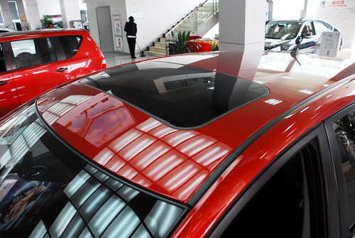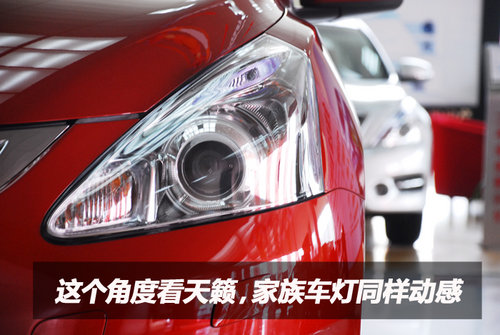 新车车头和日产新前脸走到一起,你可以淡淡看到天籁和阳光的影子,只是这个黑色的网状格栅有些犀利,搭配红色车身非常动感。