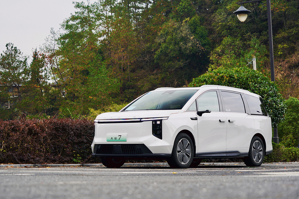动力方面,大家7全系采用单电机驱动,最大功率180kW,峰值扭矩350N·m。单看参数的话,这台电动机与市面上的2.0T高功率发动机是差不多的,放在一款面向家用的中型MPV上再合适不过了。再加上电动机本就出色的低扭能力,动力响应和顺滑程度也要比燃油车更有优势。