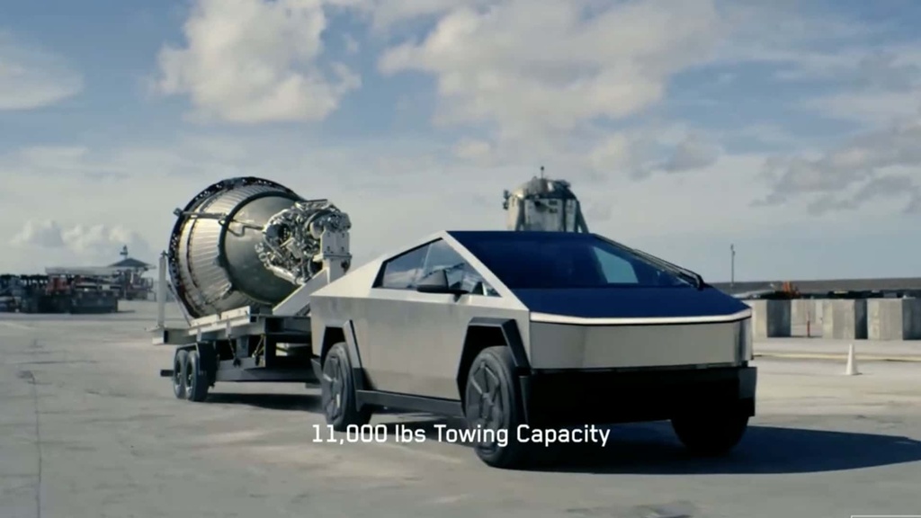 3、交付发布会期间,为体现Cybertruck强大的动力储备进行了直线加速展示,一台野兽版Cybertruck拖着一辆保时捷911跑赢了另一辆保时捷911,体现出其三电机强大动力的同时,这一画面大概率也会成为在未来被媒体和用户广泛讨论的特斯拉名场面之一。