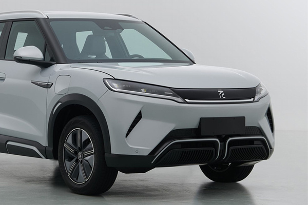 元UP大灯组与黑色饰条相连,保险杠下部带有U字型装饰,两侧进气口装饰为斜向布局;车侧采用悬浮式车顶,充电接口位于右前翼子版处,与元PLUS保持一致,门把手改为半隐藏式设计;尾部上方扰流板、贯穿式中国结灯组与护卫舰07造型相似,保险杠U型装饰与车头相呼应。