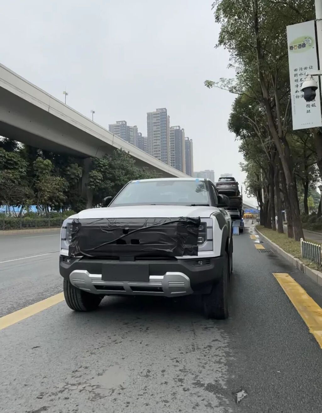 1月底,比亚迪海洋网经销商传出一组全新混动皮卡的实拍照片及视频,并表示预计售价为10余万。外观部分,与此前曝光的渲染图较为一致,虽然带有一定伪装但看的出造型较为方正,配备C字型日间行车灯,极具硬派气息的同时透露出作为新能源皮卡的科技感。车侧来看,该车具有较高的离地间隙,并配备了18寸佳通轮胎。值得一提的是,比亚迪皮卡也配备了传统皮卡中常见的龙门架设计。