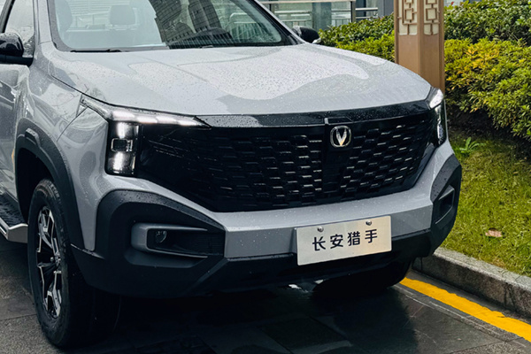猎手前脸采用无边界进气格栅,两侧配备7字型LED大灯,保险杠两侧雾灯移至下方,加入C字型饰条;外后视镜提供亮黑色涂装可选,增加黑色轮眉,换装拼色轮毂;尾部货箱龙门架增加黑色装饰板,尾门把手改为黑色涂装,保险杠两侧加入银色饰板。
