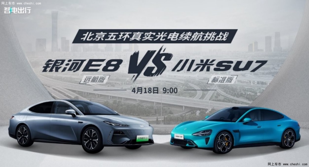 近日,智电出行&网上车市举办了“北京五环真实光电续航挑战”,首次以直播的形式将小米SU7 700km标准版(以下简称小米SU7)和银河E8 665km远航版(以下简称银河E8)两台车围绕着北京五环这条打工人最常走的路进行了续航测试。