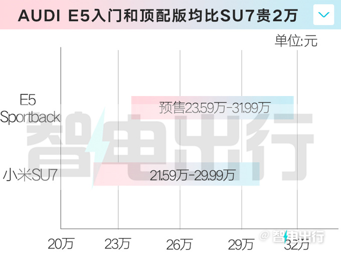 AUDI E5 Sportback的疯狂在于其完全打翻了奥迪车型以往的定价逻辑,价格带和小米SU7高度重叠。坦白说,这是一款“只许成功,不许失败”的产品。