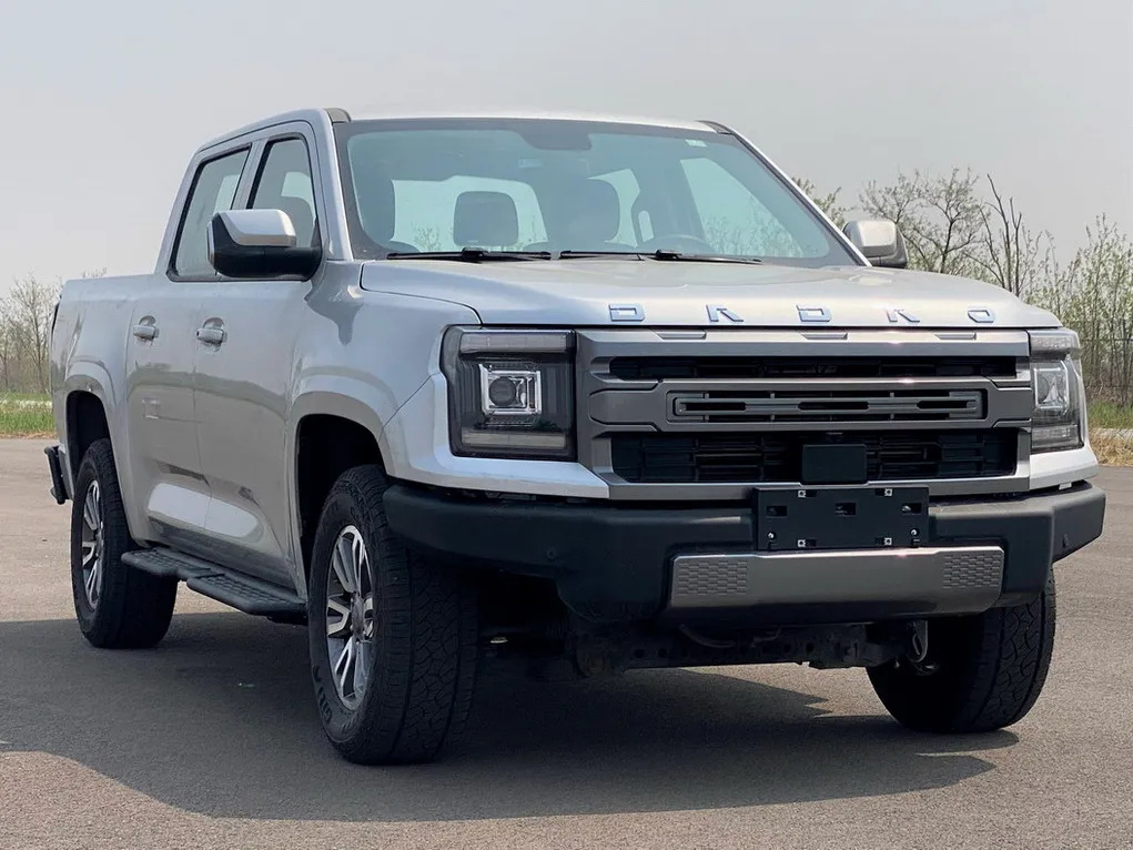 这两款新大道外观保持一致,可能是两驱和四驱车型。与2023款大道相比,新车最大变化是前脸发生变化。新大道不再悬挂大道图形车标,替换成更夸张的纯字母“DADAO”LOGO。新LOGO的位置也从格栅中网位置上挪至引擎盖处。这也和当下众多车标纷纷上移的趋势保持一致。新车标上移至引擎盖处显得更加简洁高端。而此前悬挂车标的中网被改成了3个细细的长方形图案点缀。