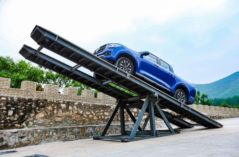 随着项目的逐渐深入,两车来到了素有“越野车审判地”之称的交叉轴项目,虽然本次试驾活动所使用的车型,均未配备差速锁,但即便面对双轮失去附着力的困境,在强劲动力的支持下,以低速四驱模式,也能快速实现脱困。此外,2.4T乘用炮、商用炮得益于非承载式车身结构,车身抗扭刚度更高,面对交叉轴、馒头包等越野场景,底盘大梁可以更好的吸收扭曲力,避免底盘及车身变形,让越野变得更加安心。
