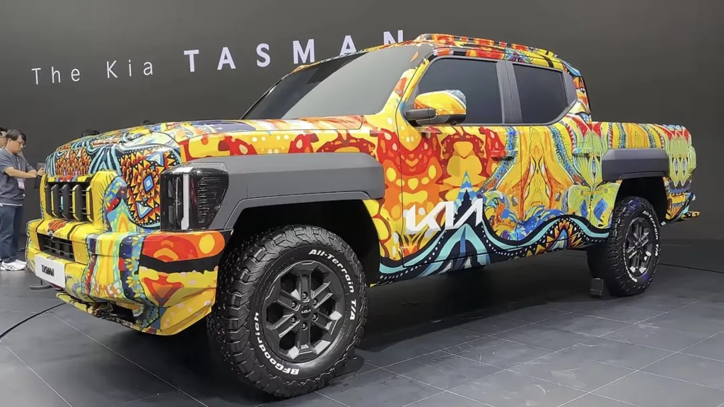 近日,韩国釜山国际车展正在火热开展。起亚全新皮卡Tasman昨天在车展现场正式亮相了。作为起亚首款大皮卡,Tasman一经亮相,引起了非常多媒体和消费者的关注。不过,在本次车展,Tasman仍然身披彩色伪装贴。该伪装贴由著名艺术家Richard Boyd-Dunlop设计。