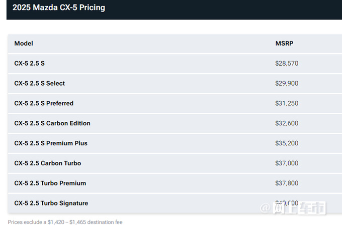 目前马自达新款CX-5车型(2025款)已在海外市场上市开售,其入门级CX-5 2.5 S车型重回产品线,市场起售价格降低至28,570美元(约为21万人民币),并计划将于三季度末陆续开启交付工作。同时国产马自达新款CX-5车型也有望在下半年陆续推出,同级主要竞争对手包含了比亚迪宋PLUS、丰田锋兰达、本田CR-V等车型。