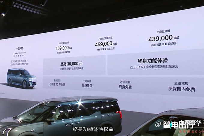 7月19日,极氪新009上市,售价区间43.9万元-46.9万元,较老款最高降11.9万。新车提供7座通道版以及6座行政版可选,新增手动遮阳帘、护眼吸顶灯和恒温冷暖冰箱;全车座椅采用NAPPA+回弹海绵,提供伊姆斯躺椅模式。极氪新009基于400V/800V双平台打造,搭载宁德时代140kWh三元锂电池,CLTC最大续航900km。