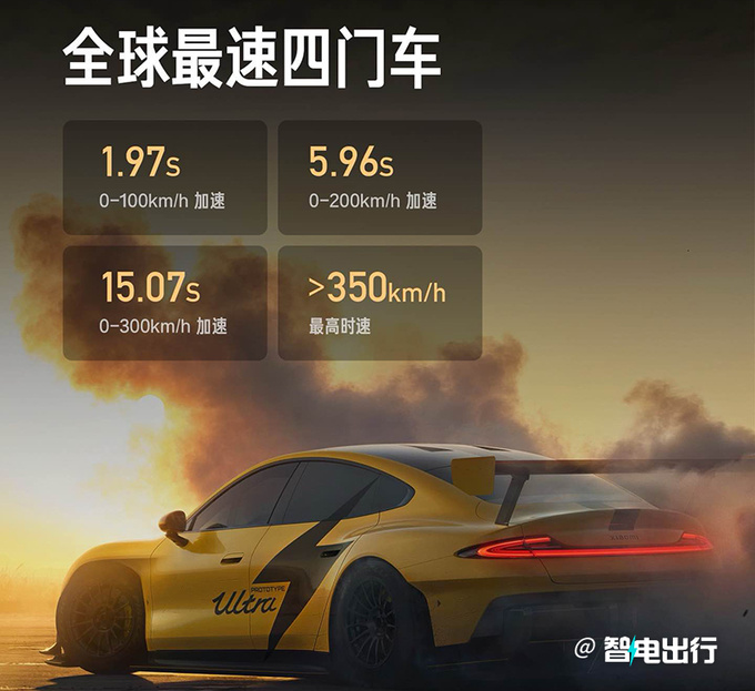 新车搭载的V8s电机最高转速27200rpm,最大马力578Ps,峰值扭矩635N·m。SU7 Ultra原型车将成为全球最速四门车,0-100km/h加速1.97s,0-200km/h加速5.96s,0-300km/h加速15.07s。