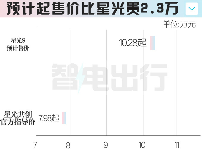 销售员表示:新车将于8月1日上市。星光S预分车价为10.28万元-13.43万元,比星光共创版贵2.3万元,部分车型支持选装座椅通风加热+电动尾门。