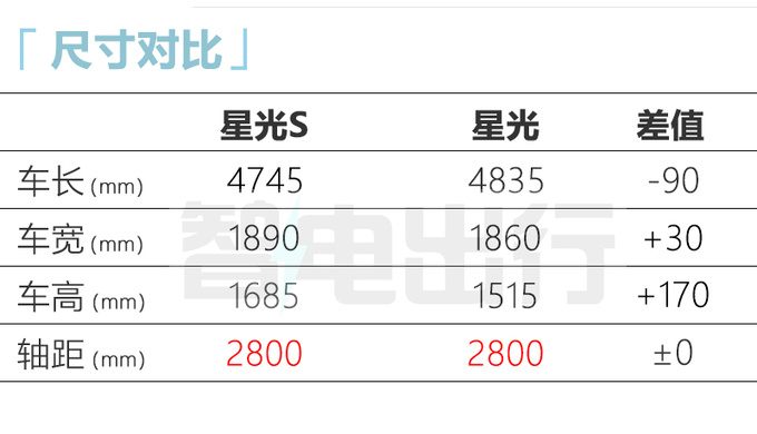 五菱星光S与星光同源,均来自天舆架构D平台,同样搭载五菱“灵犀动力”、“神炼电池”两大核心技术,轴距同为2800mm,可视作星光的“SUV版”车型。