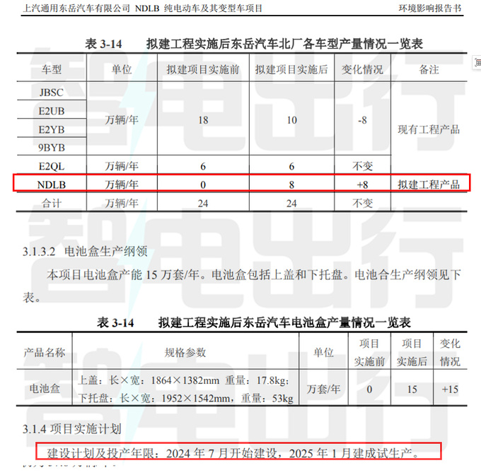上汽通用东岳汽车有限公司计划对NDLB纯电动车及其变型车项目进行技术改造,项目投资总额为234900万元,2024年7月开始建设,2025年1月建成试生产。