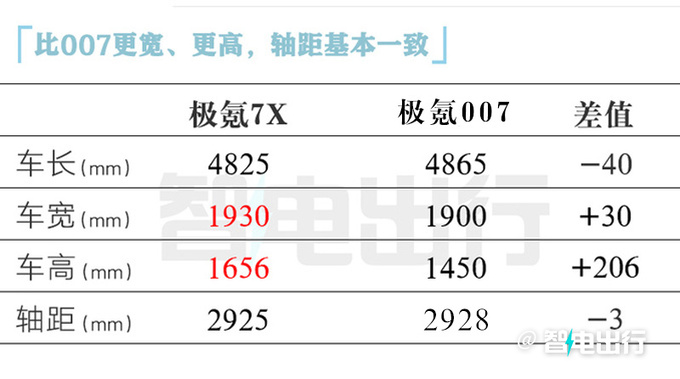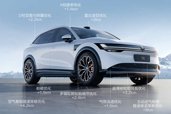 极氪7X标配800V极芯电池包,后驱版最大功率310kW,四驱版最大功率475kW。高配车型有望采用空气悬架,预计工况续航里程突破700km。