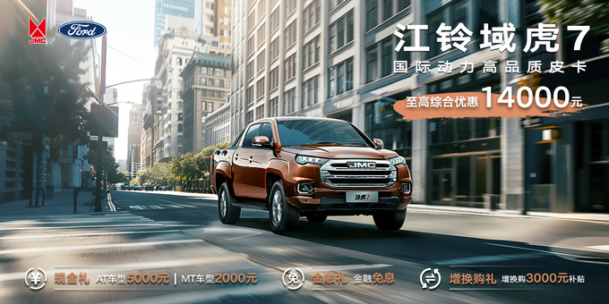 与此同时,在商乘两用皮卡领域独树一帜的域虎7,同样在此次购车优惠活动中展现了非凡吸引力,其AT车型和MT车型不但均奉上了3000元增换购补贴,还分别赠送诱人的5000元、2000元现金优惠以及金融免息政策,综合优惠额度可达14000元,为追求实用与豪华并重的用户带来了前所未有的购车良机,让每一次出行都成为享受。