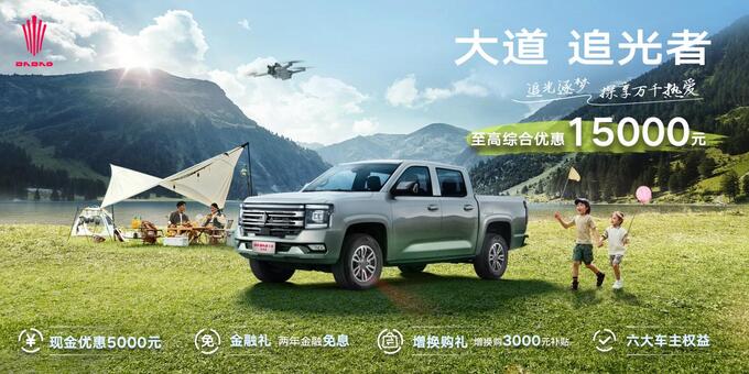而以强劲动力、丰富智能配置以及舒适内部空间闻名的大道追光者,以及拥有让用户兼顾家庭与事业的全面性能的大道全能者,不光推出了3000元增换购补贴,更是给出了5000元现金优惠、两年金融免息两项购车福利,至高综合优惠高达15000元,让每一位用户都能轻松拥有理想座驾。
