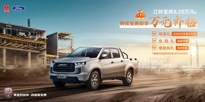 此外,作为商用皮卡常青树的江铃宝典,其在3000元增换购补贴的基础上,叠加6000元惊喜大礼包、金融免息等多项购车福利,购车即可享万元补贴,实力演绎“超值”!
