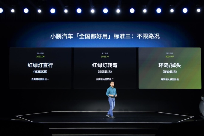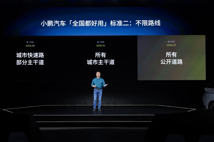 发布会现场,小鹏汽车董事长 CEO何小鹏正式宣布XNGP从“全国都能开”全面升级为“全国都好用”,并提出“全国都好用”的三大标准:不限城市、不限路线、不限路况。