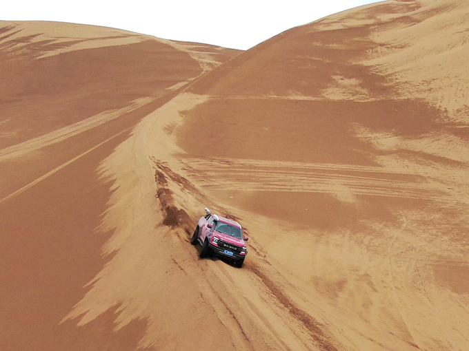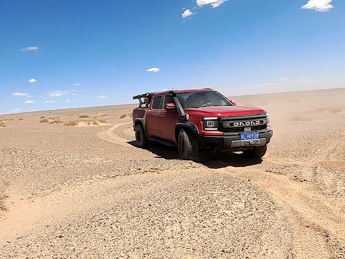 令多少考古学家魂牵梦绕的罗布泊,今时今日虽已成生命禁区,但在大道敢探者的助力下,笔者首次尝试便顺利完成穿越,这与大道敢探者优秀的产品标定是分不开的。其实早在穿越开始之前,当地向导便劝笔者待到9月气温转低后再进行穿越,但既然是硬核测试,就要选在难度最高、温度最高的夏季。总结来看,无论是底盘、分动箱、动力系统还是车内舒适性,大道敢探者在地表60余度的酷暑之下均表现出色未出现任何质量问题。越野能力更是堪称卓越,无论松软沙地还是坚硬磐石都能无障碍通过,彰显出其作为国内顶尖越野皮卡的产品实力。